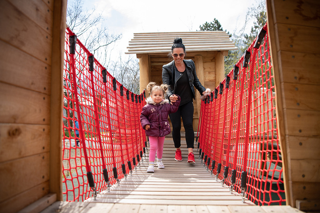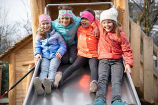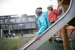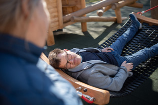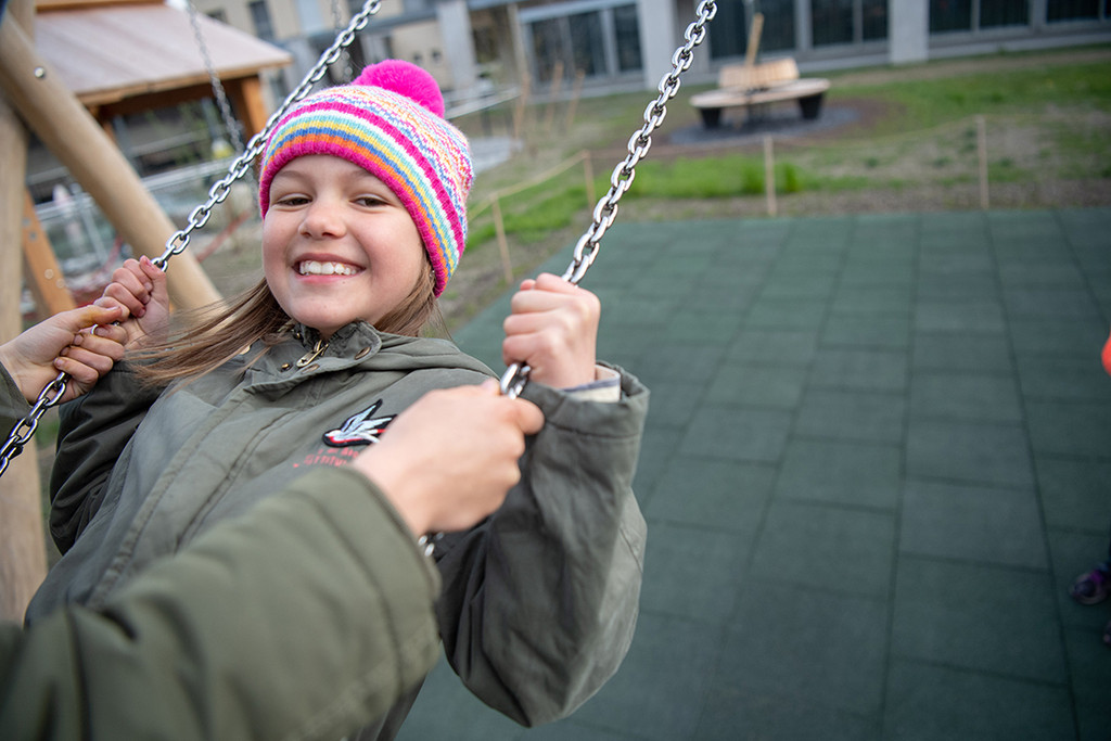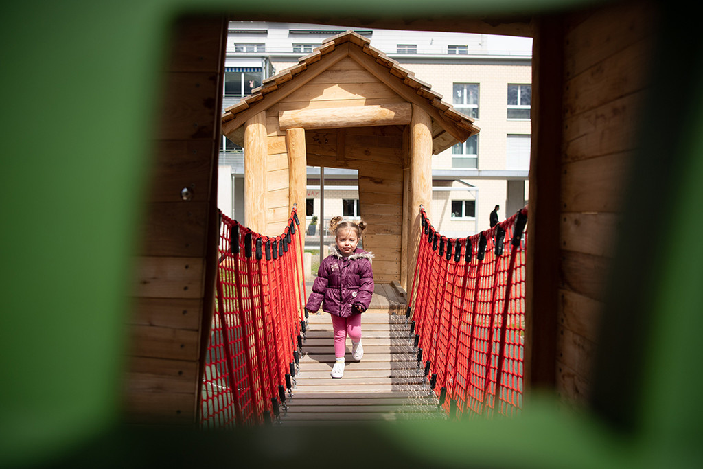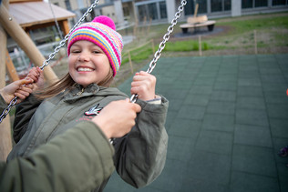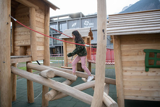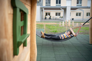 Der Spielplatz bietet dir viel Abwechslung: Schaukeln, klettern, balancieren oder einfach auch etwas ausruhen – alles ist möglich auf unserem Spielplatz.