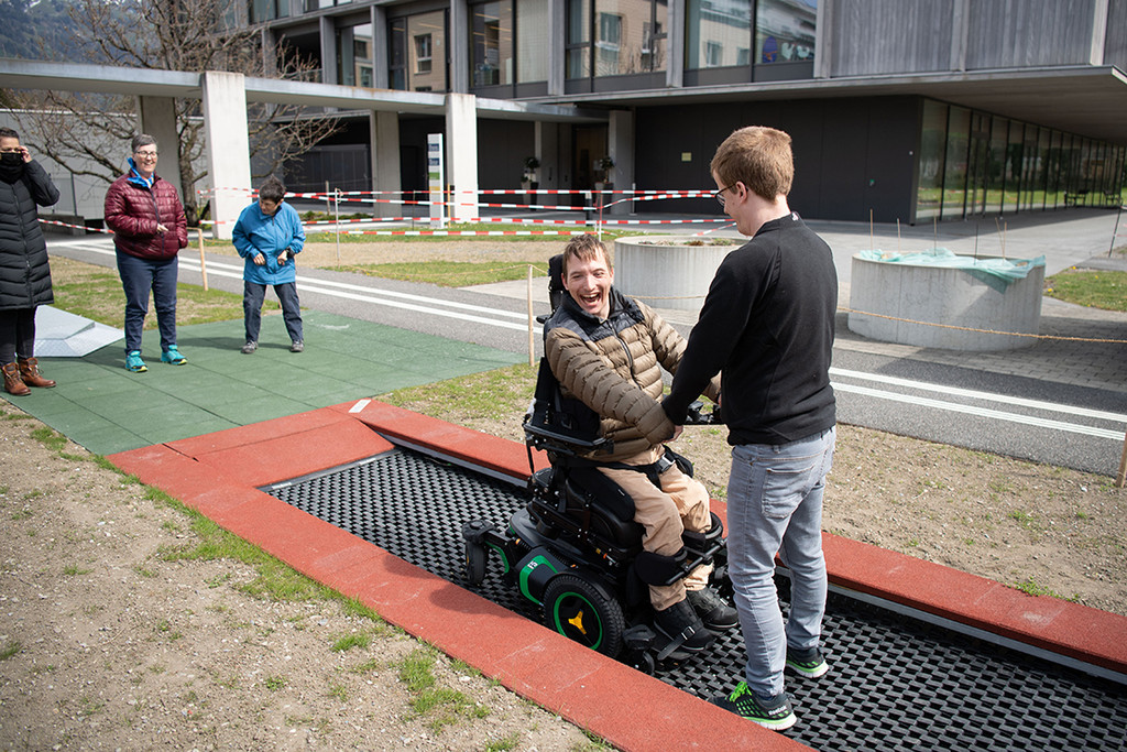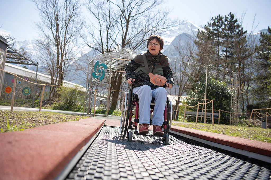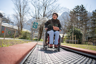 SchwungSpass für alle – ganz egal, ob mit oder ohne Hilfe: Das Schwingen auf dem Trampolin vermittelt auch für Rollstuhlfahrerinnen und -fahrer ein besonderes Freiheitsgefühl. Die grosse Sprungfläche kann an beiden Kopfseiten einfach und selbständig über die abgeschrägten Fallschutzplatten befahren werden. Trampoline fördern Bewegungsaktivitäten der verschiedensten Art und dienen gleichzeitig dem Training von Muskulatur und Gleichgewichtssinn. Des Weiteren ist es ein wichtiger Bestandteil im therapeutischen Bereich. Denn das Springen auf dem Trampolin trägt zum Abbau von psychischen Spannungen und Aggressionen bei.