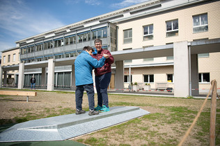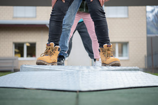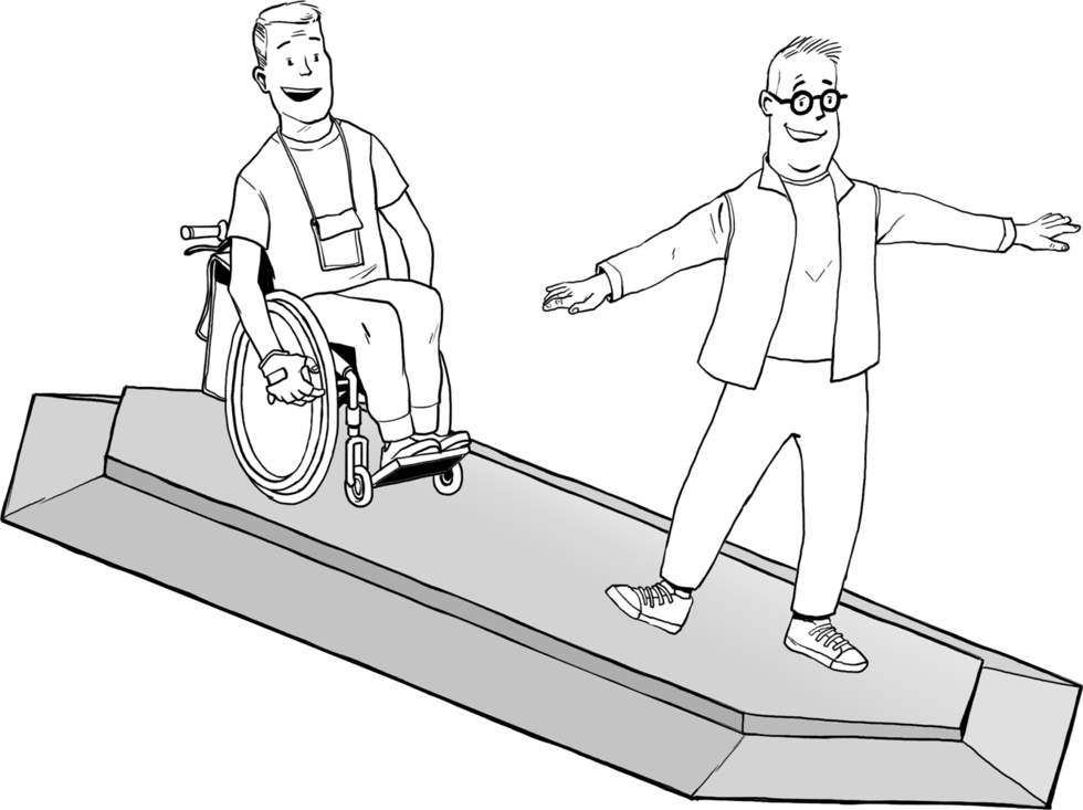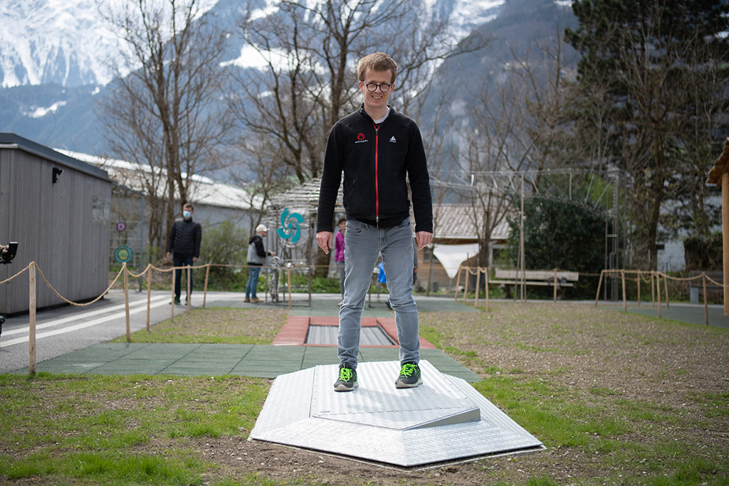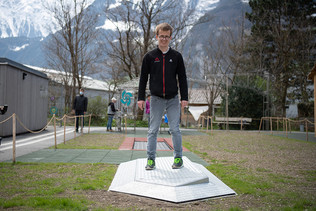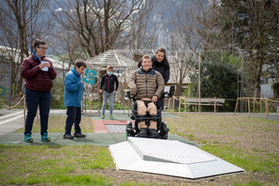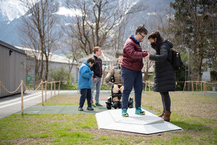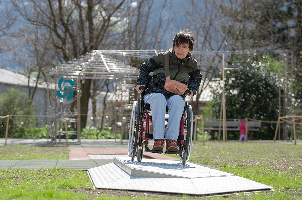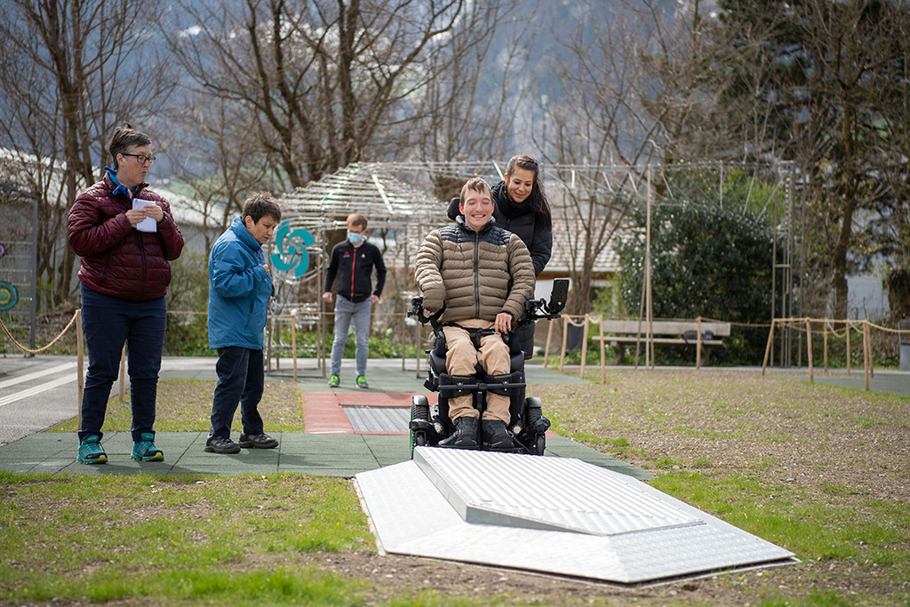 Die Wippfläche ist ein unauffälliges, aber wirksames Spielangebot für verschiedene Bewegungsspiele. Es macht Kipp- und Wippbewegungen für alle erlebbar. Die Stabilität der flachen Metallplatten mit den feststehenden Anlauframpen und einem beweglichen Teil zum Wippen erlaubt auch Rollstuhl- und Velofahrerinnen und -fahrern darüber zu fahren.