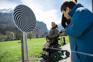 Verweilt man für einen Augenblick vor der rotierenden Scheibe, so erlebt man Erstaunliches. Jemand bringt die Scheibe zum Drehen und hält diese für ein bis zwei Minuten in gleichmässiger Bewegung. Eine zweite Person tritt etwas zurück und betrachtet das Zentrum der Spirale. Die Trennlinien verschwimmen, der Mittelpunkt beginnt vermeintlich zu rollen und es entstehen farbige Lichterscheinungen. Wendet man den Blick nach einer Weile ab und sieht unmittelbar in ein nahes menschliches Gesicht oder einen entfernten Berggipfel, so scheinen sich diese entgegengesetzt zu drehen und sich kreisförmig auf uns zu zubewegen. Für einen Moment wird einem bewusst, wie unser Gehirn mit Reizüberflutung umgeht. Es stellt sich die Frage, welche unserer Wahrnehmungen der Wirklichkeit entsprechen und welche konstruiert sind.