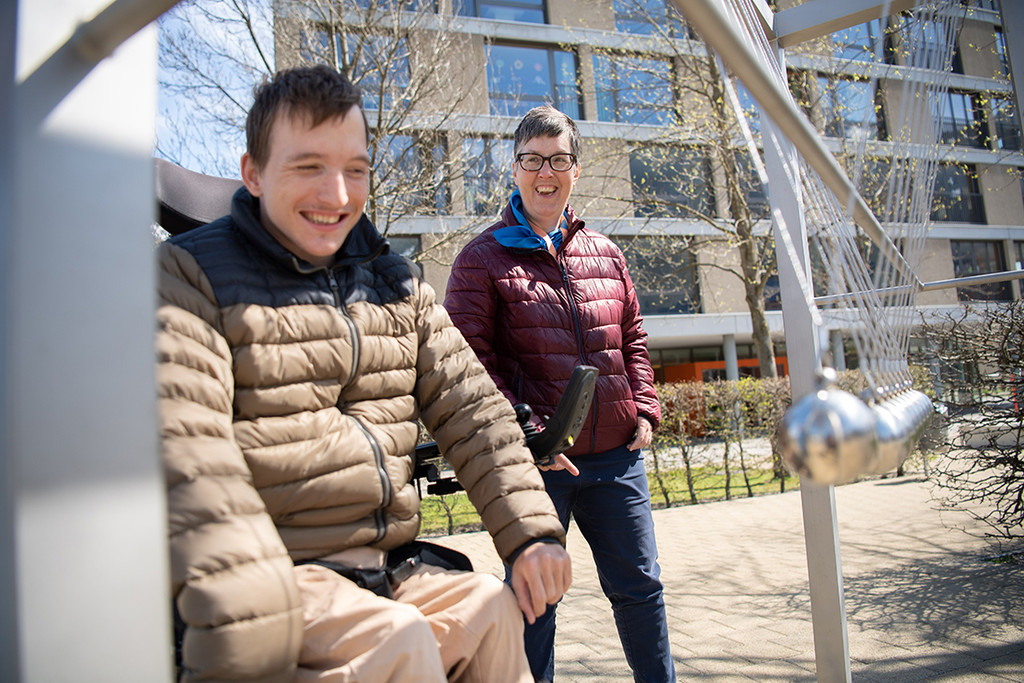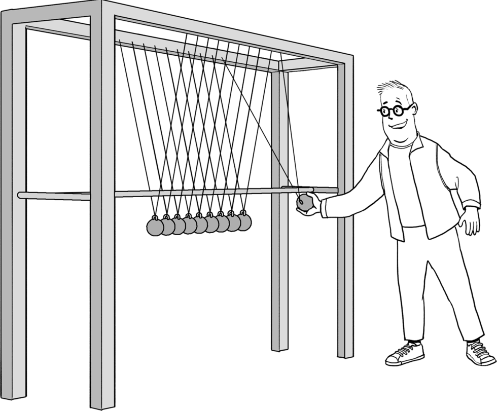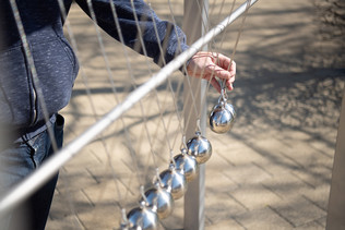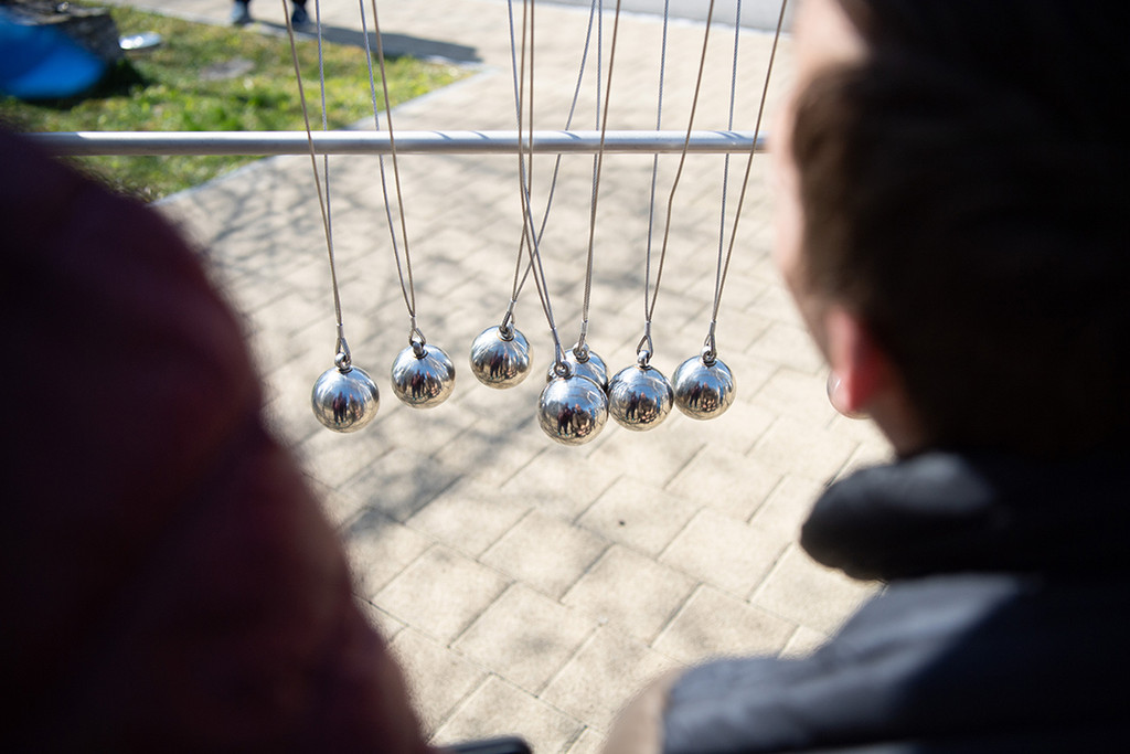 Stosse die Kugeln von einer Seite an und beobachte den Effekt. Angestossen von zwei Seiten funktioniert es nicht.